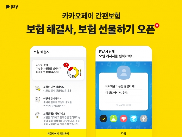 [서울파이낸스 이진희 기자] 카카오페이는 자사 보험 서비스 이용자를 위한 '보험 해결사'와 '보험 선물하기' 서비스를 개시했다고 7일 밝혔다.