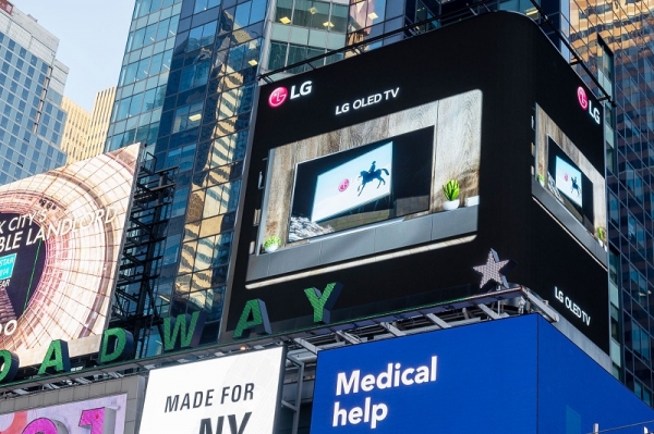 LG전자는 미국 뉴욕 타임스스퀘어(Times Square) 전광판에서 레이디 가가가 최근 발표한 신곡 '911'의 뮤직비디오를 상영하고 있다고 19일 밝혔다.