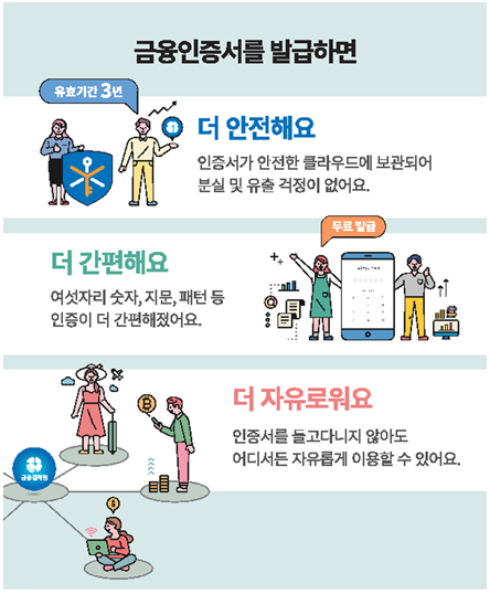 금융인증서는 별도의 앱(애플리케이션)이나 프로그램을 설치하지 않아도 되고, 인증단계를 간소화한 것이 특징이다. 현재 대부분의 은행에서 발급받아 대면 및 비대면 은행업무에 이용할 수 있다.