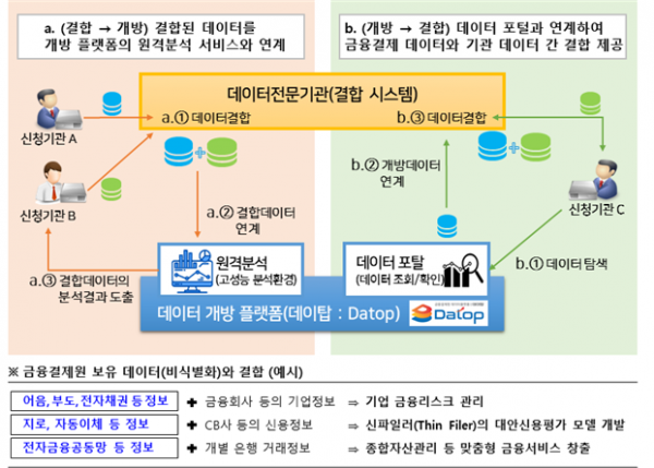 데이터전문기관은 금융 데이터의 활용을 위해 신청기관이 결합 의뢰한 금융·이종 산업 간 데이터를 안전하게 결합한 후 가명·익명처리, 제공하는 업무를 수행한다. 금결원은 신청기관 간에 데이터 결합 서비스를 무료 제공하며, 하반기 중 금융권 공동 데이터 플랫폼(데이탑)과 연계해 보유한 데이터(비식별화)와의 결합·활용을 지원할 계획이다.