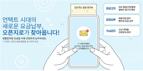 [서울파이낸스 이진희 기자] 금융결제원은 신문 구독료, 도시가스 요금, 헌금, 기부금 등 생활밀착형 요금을 간편하게 수납·납부할 수 있는 오픈지로 서비스를 본격 실시한다고 29일 밝혔다.