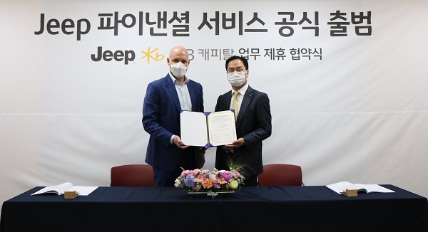 황 대표는 "지프 구매자들에게 KB캐피탈의 경쟁력 있는 금융상품과 서비스를 제공할 수 있도록 노력하겠다"며 "양사는 탄탄한 협력관계를 통해 상호 윈윈(win-win)할 수 있는 네트워크 기반을 만들어 나갈 계획"이라고 말했다.