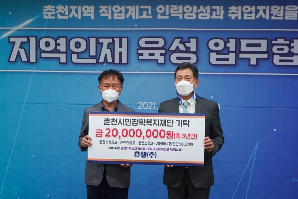 휴젤은 인재 육성을 통해 춘천 지역 경제 활성화에 이바지하는 한편, 우수 인력 발굴로 지역과 회사의 동반 성장을 목표로 한다. 향후 3년간 휴젤은 춘천시민장학재단을 통해 춘천기계공고와 춘천한샘고, 춘천소양고, 강원애니고 재학생을 대상으로 매년 2000만원의 장학금을 지원한다. 10월부터는 학교 추천을 받은 총 6명의 학생에 취업 연계형 현장실습의 기회를 준다.