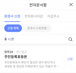 이니셜 앱에서 전자증명서를 조회하기 위해서는 '정부24' 앱에서 전자문서지갑 서비스를 신청한 후 필요한 전자증명서를 발급받으면 된다.