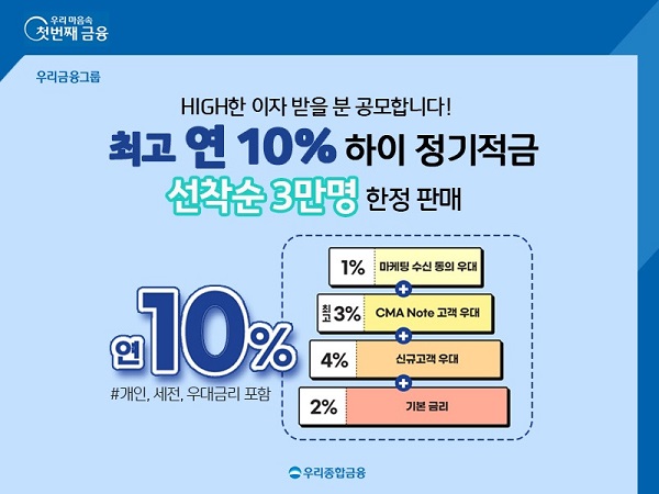 [서울파이낸스 이진희 기자] 우리종합금융은 MZ세대(밀레니얼+Z세대)를 겨냥한 '하이정기적금'을 출시한다고 27일 밝혔다.