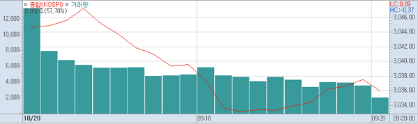 [서울파이낸스 박조아 기자] 코스피가 개인의 매수세에 상승 출발하면서 장중 3040선을 회복했다.