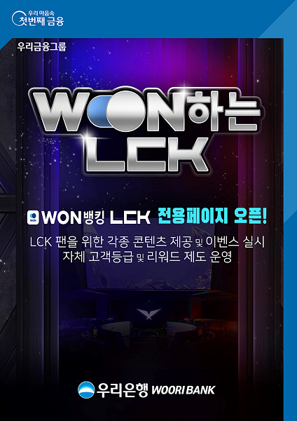 [서울파이낸스 이진희 기자] 우리은행은 우리원(WON)뱅킹에 리그 오브 레전드 챔피언스 코리아(LCK) 팬을 위한 '원하는 LCK' 전용 페이지를 열었다고 10일 밝혔다.