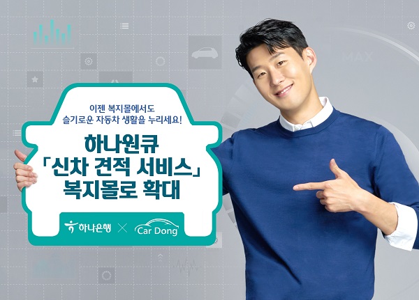 [서울파이낸스 이진희 기자] 하나은행은 하나원큐의 '신차 견적 서비스'를 현대이지웰, SK엠앤서비스(베네피아), 인터파크비즈마켓 등 국내 주요 '복지몰'로 확대 제공한다고 16일 밝혔다.