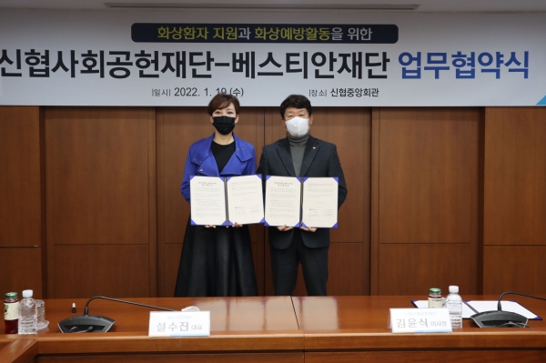 신협재단은 이번 업무협약을 통해 저소득층 화상환자 치료비 지원사업을 비롯해 베스티안재단과 함께 다른 사업도 추진할 예정이다. 앞서 신협은 지난 2020년 소방관과 화상환자를 지원하는 'S.A.V.E.' 캠페인 및 저소득층 화상 환자를 위해 6500만원을 후원한 바 있다.