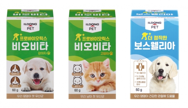 이번에 출시한 제품은 반려동물 장 건강용 프로바이오틱스 일동펫 비오비타 시리즈 2종과 반려동물의 관절 건강을 위한 일동펫 더 정직한 보스웰리아 총 3종이다. 일동펫 비오비타 시리즈는 강아지용과 고양이용으로 나뉜다.