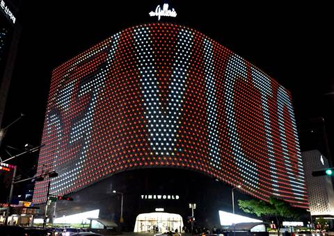타임월드는 이글스 대전 홈경기가 있던 지난 8일부터 10일까지 테스트 영상 실연을 마쳤다. 올해 한화이글스 대전 홈경기가 있는 날이면 외관 미디어 파사드에 이글스 승리기원 응원 메시지를 띄운다. 15일 LG와의 대전 홈경기 3연전부터 첫 송출한다.