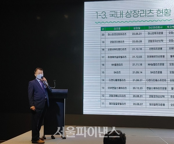 6일 조준현 한국리츠협회 본부장은 서울 여의도 글래드호텔에서 열린 '2022년 상장리츠 투자간담회'에서 공모·상장리츠(REITs·부동산투자회사)의 활성화를 위한 제도개선 필요에 대해 주장했다.