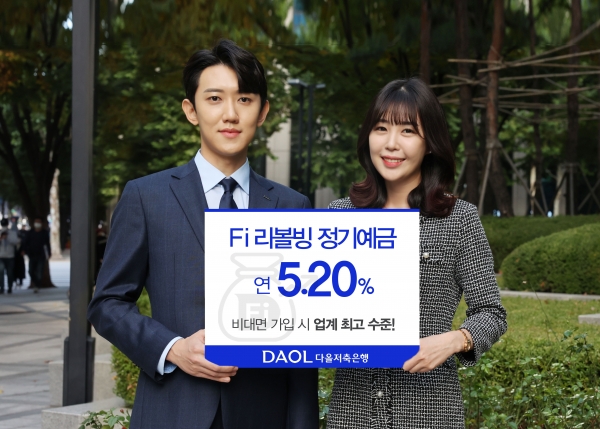 Fi 리볼빙 정기예금은 기존보다 금리가 0.85%p 올라 비대면 가입 시 연 5.20%의 금리를 제공한다. 자유롭게 입출금이 가능한 Fi 저축예금의 경우 다올디지털뱅크 '파이(Fi)' 애플리케이션으로 가입하면 최대 연 3.20%의 금리가 제공된다. 입금금액 한도가 없어 단기자금 운용이 가능하다.