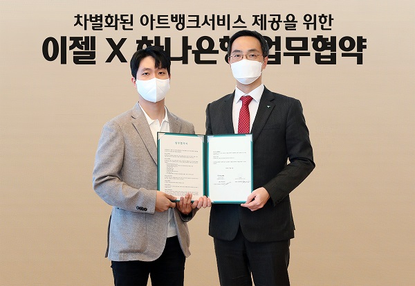 [서울파이낸스 이진희 기자] 하나은행은 미술 콘텐츠 플랫폼 이젤과 차별화된 아트뱅크 서비스 제공을 위한 업무협약(MOU)을 체결했다고 14일 밝혔다.