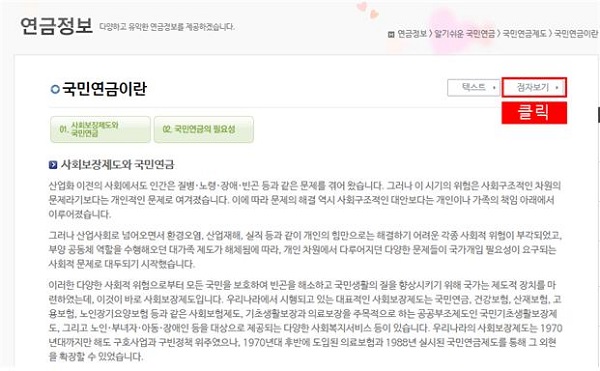 전자점자 서비스는 홈페이지에 게시된 각종 정보와 소식을 점자 파일로 변환해 제공하는 서비스다. 새 소식, 보도자료, 알기 쉬운 국민연금 등 17개 콘텐츠를 이용할 수 있으며, 계속 추가할 예정이다.