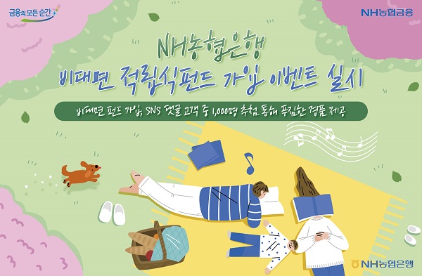 [서울파이낸스 이진희 기자] NH농협은행은 다음달 30일까지 비대면 적립식 펀드 신규 가입 고객과 SNS 게시물 댓글 고객을 대상으로 '투자봄날 펀드동행' 이벤트를 실시한다고 4일 밝혔다.