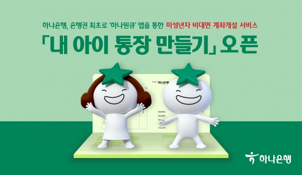 [서울파이낸스 이진희 기자] 하나은행은 모바일 앱 '하나원큐'를 통해 미성년자 비대면 계좌 개설 서비스인 '내 아이 통장 만들기'를 개시했다고 9일 밝혔다.