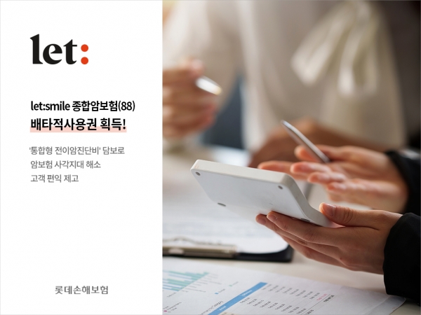 [서울파이낸스 이진희 기자] 롯데손해보험은 지난달 5일 출시한 'let:smile 종합암보험(88)'의 원발암 기준 8종으로 세분화된 '통합형 전이암진단비'에 대한 배타적 사용권을 부여받았다고 10일 밝혔다.