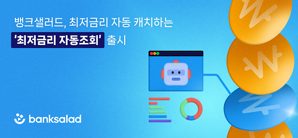 뱅크샐러드 관계자는 "최저금리 자동조회는 찾아가는 대출 서비스의 개념으로, 금리 조회 또는 대출 실행 후 일일이 변동 사항을 체크하지 않아도 알아서 체크해주는 서비스"라며 "모든 경제 상황과 변수를 계산해 고객의 최저금리를 찾아 편의성을 확대하겠다"고 말했다.