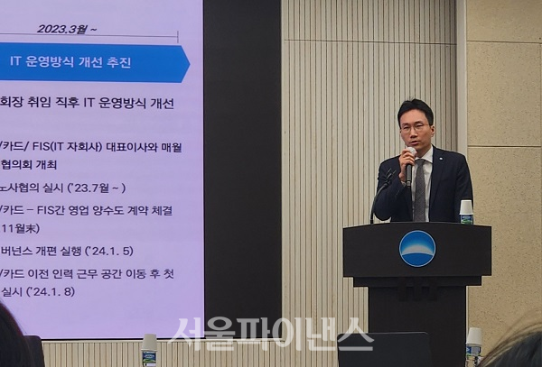 옥일진 우리금융 디지털혁신부문 부사장은 "우리FIS 직원 중 90% 이상이 담당 업무에 따라 재배치됐다"며 "은행과 카드 현업직원들이 자체적으로 IT 개발역량과 노하우를 축적하게 된 점도 IT 거버넌스 재편 이후 얻게 된 큰 효과"라고 설명했다.