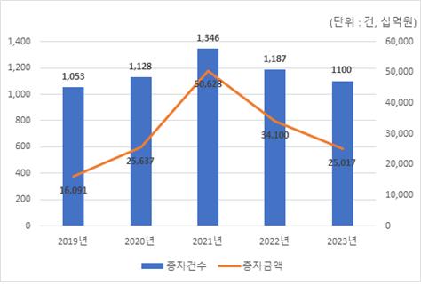 시장별로 살펴보면, 유가증권시장(코스피)는 72건, 10조5511억원 발행돼 전년 대비 건수는 28.0%, 금액은 49.1% 줄었다. 코스닥시장은 282건, 4조4206억원 발행돼 전년 대비 건수는 29.1%, 금액은 47.2% 감소했다.