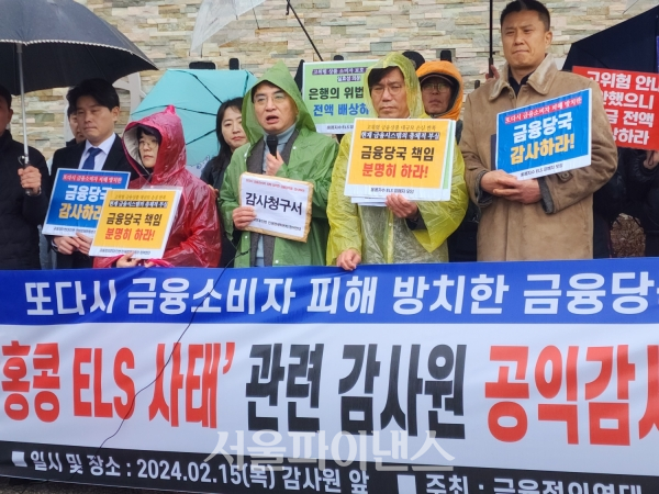 이들은 이날 기자회견을 마치고 감사원에 금융위원회, 금융감독원의 '홍콩 ELS'에 대한 제도설계, 검사, 관리감독, 직무태만, 유기에 관한 공익 감사 청구서를 제출했다