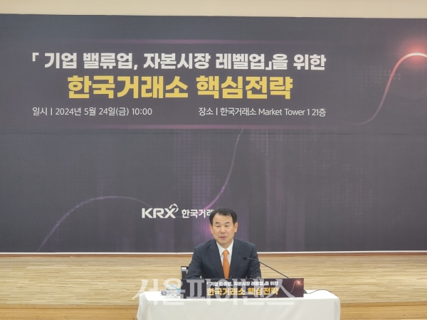 정은보 한국거래소 이사장은 지난 24일 취임 100일을 맞아 기자간담회를 개최하고 '기업 밸류업, 자본시장 레벨업'이라는 주제로 향후 거래소의 핵심전략 추진방향을 발표했다.