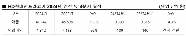 [서울파이낸스 김수현 기자] HD현대인프라코어는 공시를 통해 2024년 연간 매출 4조1142억 원과 영업이익 1842억원을 기록했다고 4일 밝혔다.