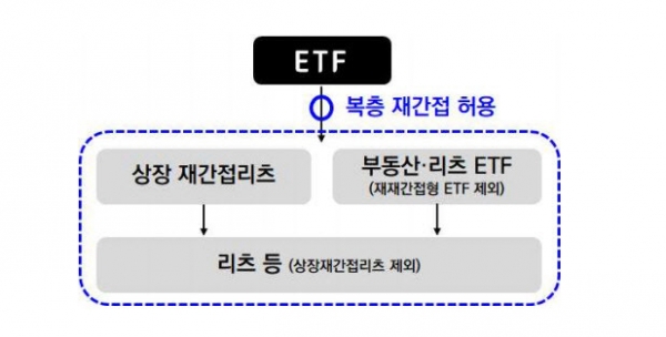 이번 개정안의 의결로 인해 ETF의 상장 재간접리츠 및 부동산·리츠 ETF 투자가 허용된다. 다만, 운용주체의 과도한 보수 수취를 방지하기 위해 제도적 장치도 마련했다. ETF와 투자대상자산의 운용주체가 동일할 경우 같은 명목의 운용보수를 중복해 받을 수 없으며, 일반적 거래조건에 비춰 투자자에게 유리한 운용보수 체계를 갖추도록 했다.