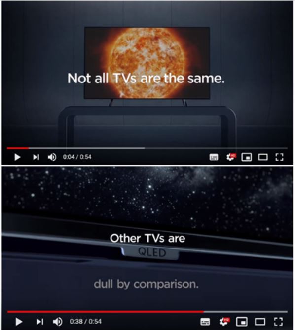 5일 업계에 따르면 LG전자 미국법인은 최근 유튜브를 통해 자사의 OLED(유기발광다이오드)TV의 장점을 강조하면서 QLED(양자점발광다이오드) TV를 비판하는 내용의 광고를 유튜브에 게재했다. 이 영상은 지난 9월 LG전자가 국내에서 내보낸 'LG올레드 TV 바로알기' 광고의 영어 버전으로, 사실상 삼성전자의 QLED TV를 비판했다는 해석이다.
