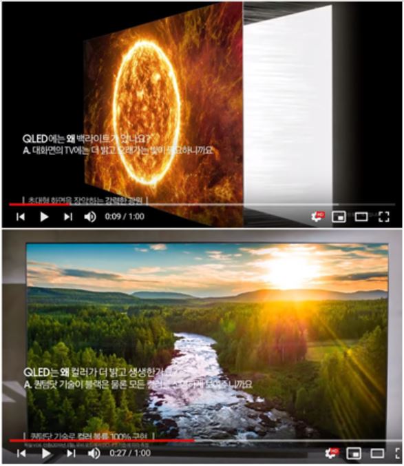 여기에 삼성전자는 지난달 29일 QLED TV에 관한 내용에 대해 답변하는 형식의 '[QLED] TVC·Q&A편' 광고를 유튜브 계정에 게재했다. 이 동영상은 주말 간 방송 광고에서도 송출되기 시작했다. 광고의 주된 내용은 LG전자가 광고를 통해 공격한 내용을 반박하는 내용으로, 그간 LG전자가 지적해 온 '백라이트 사용'도 직접 거론된다. 특히 LG전자가 공개한 영상과 동일한 'Q&A' 구성에 LG전자가 공격할 때 사용했던 태양 영상을 활용하기도 했다. 이에 따라 LG전자의 광고 '돌직구'를 정면으로 받아냈다는 평이다.