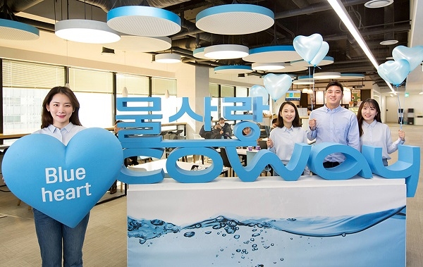 코웨이는 대형 물 사랑 조형물을 서울시 중구에 위치한 본사 내에 설치하고, '블루하트 물 캠페인'의 의미를 되새겼다. 코웨이 직원들이 대형 물 사랑 조형물 앞에서 '블루하트 물 캠페인'을 홍보하고 있다.