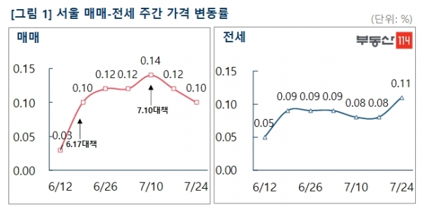 - [주간동향] 7.10대책 일주일, 서울 아파트값 상승세 둔화