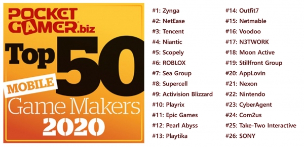 포켓게이머는 세계적으로 두드러진 활동을 펼친 게임 개발사를 대상으로 사업적 혁신, 인상적인 성장 등을 종합적으로 평가해 매년 글로벌 톱 개발사를 발표한다.