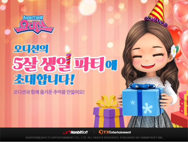 [서울파이낸스 양희문 기자] 한빛소프트는 다음달 15일까지 PC온라인 리듬액션 게임 오디션 자체서비스 5주년을 기념해 이용자에게 선물 및 경품 증정 이벤트를 진행한다고 16일 밝혔다.