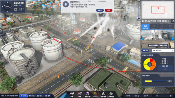 한빛소프트는2016년부터 2019년까지 4년간 증강현실 기반 재난대응 통합훈련 시뮬레이터를 개발했다. 지난해 울산광역시 '유해화학물질 유출사고 대응 재난대비훈련'에 사용하면서 처음 선을 보였다.