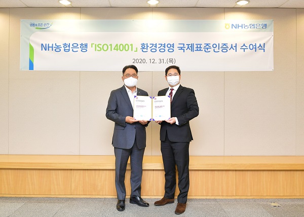 [서울파이낸스 이진희 기자] NH농협은행은 국제표준화기구(ISO)가 제정한 ISO 14001 환경경영체제 국제표준 인증을 획득했다고 3일 밝혔다.