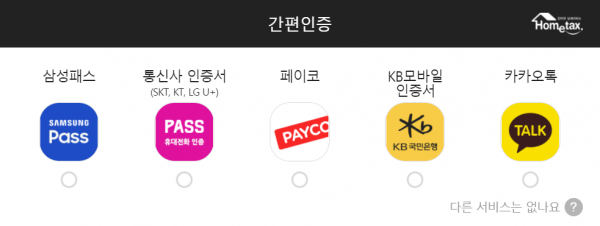 이들 사업자가 공통으로 내세우는 장점은 '편리함'이다. 우선 통신3사의 패스는 발급·인증 절차를 대폭 줄였다. 패스 인증서를 이용하는 고객은 국세청 홈택스 사이트에서 '간편서명 로그인'-'패스 인증서'를 선택해 접속할 수 있다.