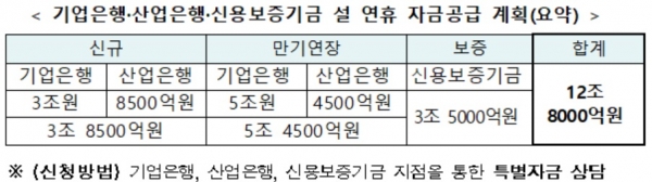 ▲1월12일부터 기업은행, 산업은행 지점을 통해 특별자금 상담이 가능하다. 지원 기간은 2월26일까지다. 기업은행의 경우 자재 대금결제, 임직원 급여와 상여금 등 운전자금 용도로 기업당 최대 3억원까지 지원하고, 만기연장이 아닌 신규 결제성 자금대출의 경우, 0.3%p 범위 내에서 금리인하 혜택을 제공할 계획이다. 산업은행은 영업점 상담 및 심사를 통해 운영자금 용도로 최대 0.9%p 범위 내에서 금리인하 혜택을 제공한다.