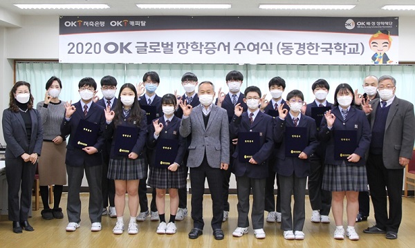 [서울파이낸스 이진희 기자] OK금융그룹 계열사들이 출연한 OK배정장학재단은 재일한국학교 우수학생들에게 장학금을 전달했다고 2일 밝혔다.