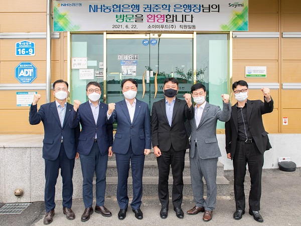 [서울파이낸스 이진희 기자] NH농협은행은 지난 22일 권준학 행장이 'NH농식품그린성장론' 잔액 1조원 달성을 기념해 두부 제조 전문기업 '소이미푸드'를 방문했다고 23일 밝혔다.