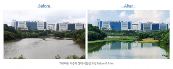 삼성디스플레이는 올해 1월부터 약 6개월 간의 공사 끝에 3만5000제곱미터(㎡) 규모의 가락바위 저수지에 총 6개의 식물섬을 조성, 최근 지역주민들과 임직원들에게 재개방했다.