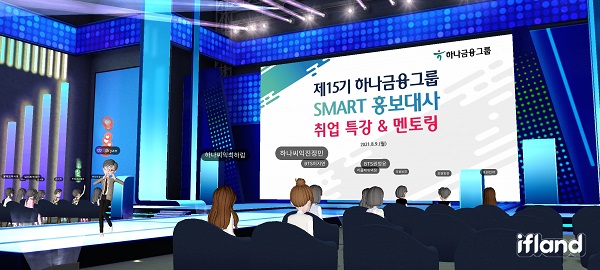 [서울파이낸스 이진희 기자] 하나금융그룹은 지난 9일 메타버스 플랫폼을 활용해 제15기 하나금융 SMART 홍보대사 55명을 대상으로 언택트 취업특강과 멘토링을 실시했다고 10일 밝혔다.