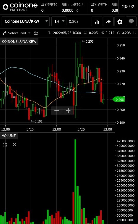 한편 암호화폐 거래소 코인원에서 루나(LUNA)는 전거래일 동일 시간 대비 5.88% 하락한 0.208원 수준에서 등락중이다. ‘테라 네트워크 재건안’ 통과 소식에 전일 한때 거래량이 크게 증가했다가 다시 감소하는 모습이다.