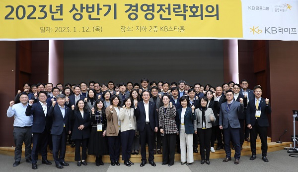 지난 12일 개최한 '2023년 경영전략회의'에서 화학적 결합에 대한 의지를 다진 KB라이프생명은 핵심 전략으로 △차별화된 상품·비즈니스 전략 전개 △미래 성장 위한 신성장동력 확대 △고객 경험 극대화 위한 디지털 전환 △ESG(환경·사회·지배구조) 경영 확대 등을 추진하기로 했다.