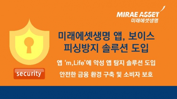 [서울파이낸스 이진희 기자] 미래에셋생명은 보이스피싱 범죄를 방지하기 위해 고객용 모바일 애플리케이션(앱)인 'm,Life'에 악성 앱 탐지 솔루션 '페이크파인더'를 도입했다고 22일 밝혔다.