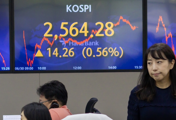 30일 코스피지수는 전 거래일 대비 14.26p(0.56%) 오른 2564.28에 마감했다. 지수는 전장보다 8.41p(0.33%) 상승한 2558.43에 출발한 이후 상승흐름을 지속했다.