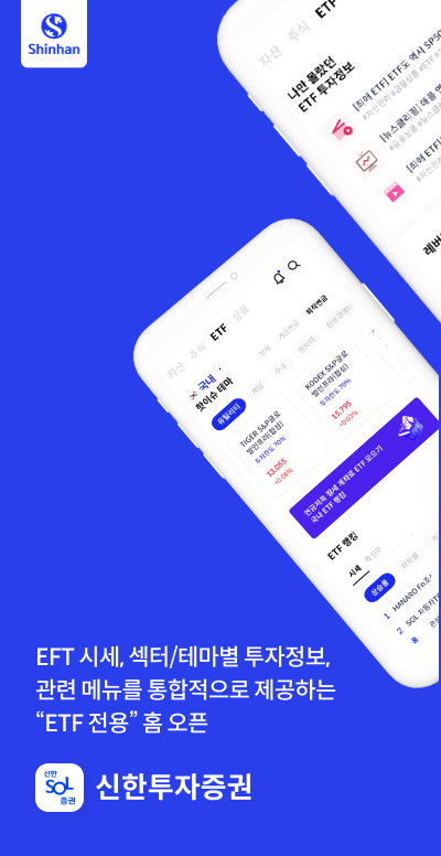 [서울파이낸스 박조아 기자] 신한투자증권은 최근 고객의 관심도가 높은 ETF 투자 접근성을 확대하기 위해 신한 SOL증권 모바일트레이딩시스템(MTS) 메인 최상단에 'ETF 전용' 홈 화면을 신규 출시했다고 19일 밝혔다.