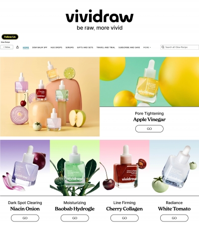 비비드로우는 비건 전문 브랜드로, 자연 유래 슈퍼푸드를 지속가능한 방식으로 추출한 기능성 비건 화장품 라인업이 특징이다.