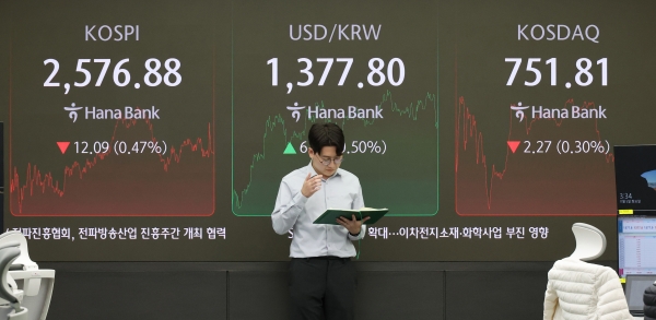 5일 코스피 지수는 전일보다 12.09p(0.47%) 내린 2576.88에 마감했다. 전날 코스피는 더불어민주당의 금융투자소득세 폐지 결정에 1.8% 올랐지만, 이날은 전장 대비 18.73p(0.72%) 하락한 2570.24에 개장했다. 그나마 낙폭은 다소 줄어들었다.